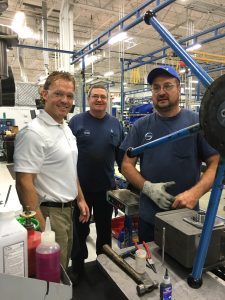 The Bendell’s visiting Luff’s factory in Calgary.